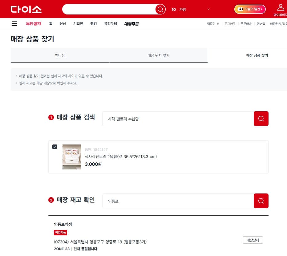현재 다이소 매장별 재고 조회는 불가하지만, 온라인몰을 통해 주요 제품의 재고 확인과 구매가 가능합니다.