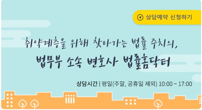 - 전화 문의: 해당 지역의 법률홈닥터 운영 기관에 직접 전화 문의
