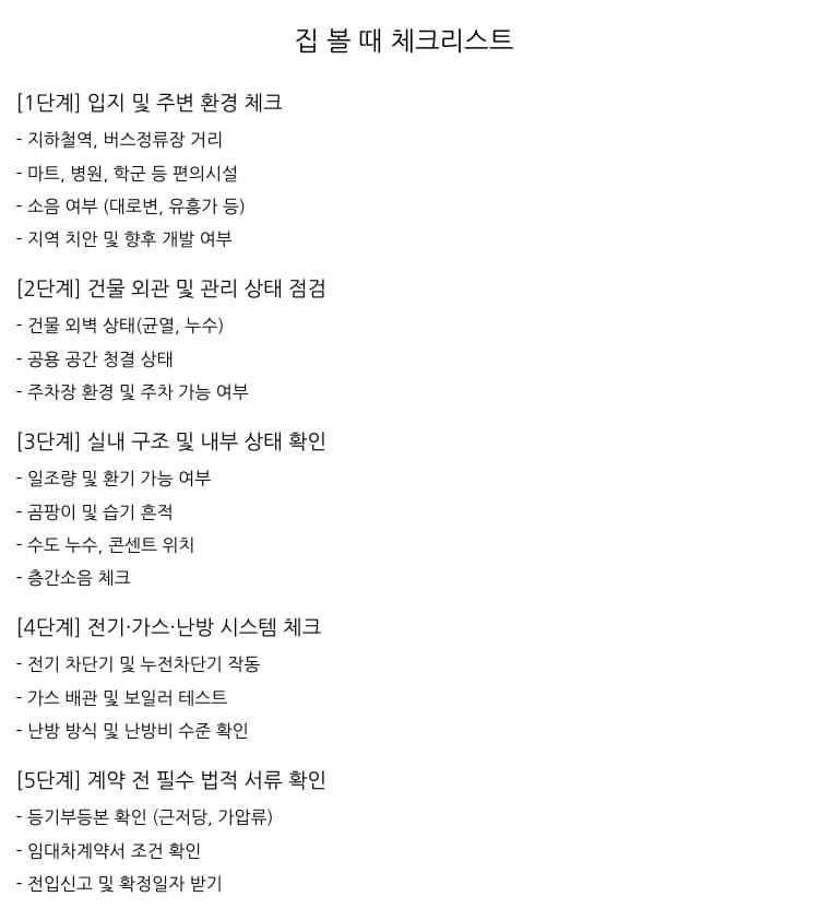 "부동산 전문가가 권장하는 체크리스트를 참고하시어, 주택 매매 및 전·월세 거래 시 위험을 예방하고 안전하고 만족스러운 계약을 체결하시길 바랍니다."